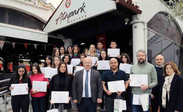 Etkinlikte koordinatör öğretmen ve öğrencilere İklim Değişikliği ile Mücadele programında aldıkları bir haftalık eğitimlerinin ardından sertifikaları ile Menteşe’yi hatırlatacak Muğla Bacası ve zeytinyağı Menteşe Belediye Başkanı Bahattin Gümüş tarafından verildi.