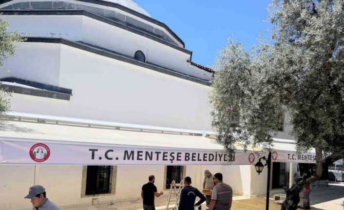 Muğla’nın önemli simgelerinden tarihi Kurşunlu Camiinin bahçesine sıcak ve yağmurlu havalarda kullanılmak üzere Menteşe Belediyesi tarafından tente monte edildi.