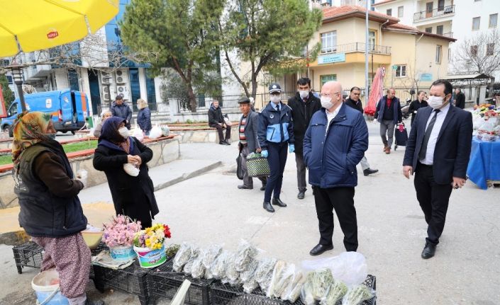 Menteşe Belediye Başkanı Bahattin Gümüş, zabıta ekipleri ile birlikte perşembe pazarında korona virüs önlemleri kapsamında halk sağlığını tehdit edecek bir şekilde satış yapılıp yapılmadığını denetleyerek, üreticileri ve halkı bilgilendirdi.