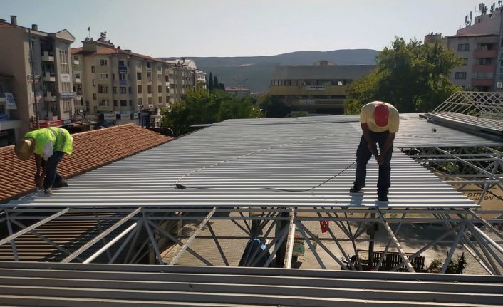 Başkan Gümüş, “Pazar yeri yenileme çalışmalarımız kapsamında pazar yerimizin yıpranan, eskiyen ve kullanım ömrünü tamamlayan çatısını da yeniliyoruz. Yenilenen çatı aşırı ısınmaya karşı mukavemet göstermesi için beyaz renkte olacak. Uzay çatı olarak bilinen sisteme sahip olacak çatıda ayrıca yağmur olukları da yer alacak. Böylece aşırı yağışlarda herhangi bir çökme ve su baskınının da önüne geçilecek. Çalışmalar tamamlandığında pazar yerimiz daha modern ve güvenli bir halde halkımıza ve üreticilerimizin hizmetinde olacak” diye konuştu.