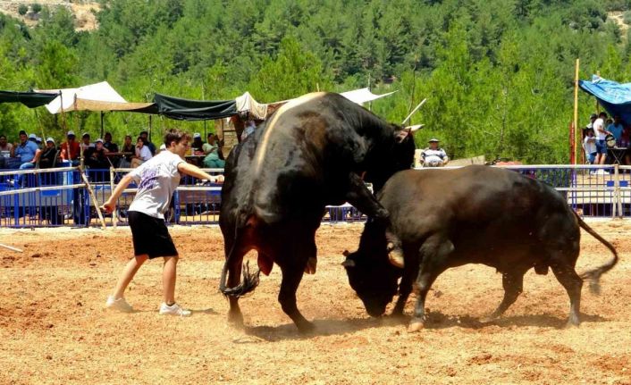Muğla’nın Menteşe ilçesinde bu yıl 10’uncusu düzenlenen boğa güreşi festivalinde boğalar kıran kırana mücadele etti.