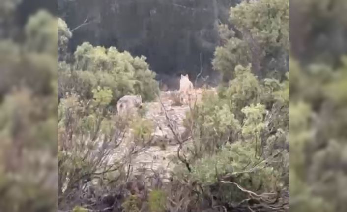 Muğla’nın Menteşe ilçesine bağlı Düzeyn mevkiinde bir kurt ve eşi, bir vatandaş tarafından cep telefonu kamerasıyla görüntülendi.