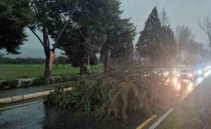 Muğla’nın Menteşe ilçesi Uğur Mumcu Bulvarı’nda fırtına nedeniyle devrilen ağaç yolu kapattı, trafik tamamen durdu; bölgeye ekipler sevk edildi.
