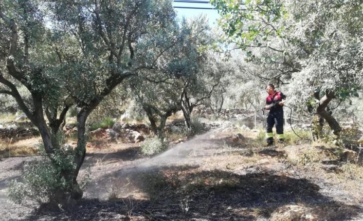 Muğla’nın Menteşe ilçesinde zeytinlik alanda çıkan yangında zeytin ağaçları zarar gördü.