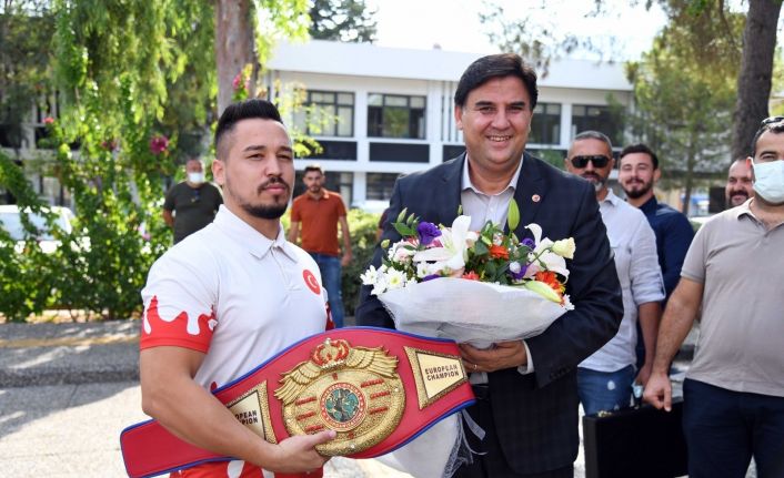 UBA Avrupa Altın Kemer Şampiyonası’nda rakibini ilk rauntta yenerek, Altın Kemeri kazanan Milli Boksör Kubilay Alcu, Fethiye Belediye Başkanı Alim Karaca’yı ziyaret etti.