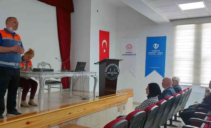 Tatbikat öncesinde Muğla İl Müftülüğü konferans salonunda AFAD görevlileri Endüstri Mühendisi ve AFAD Uzmanı Selami Tunç ve AFAD Memuru Rana Balcıoğlu tarafından deprem öncesi alınacak önlemler, deprem anında yapılacaklar ve deprem sonrasında güvenli bir şekilde tahliyelerin nasıl olması gerektiği konusunda bilgi verildi.