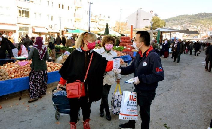 Özellikle 65 yaş üstü vatandaşların, ihtiyaçları için ilçelerindeki Vefa Sosyal Destek ekiplerine 112 Acil Çağrı Merkezi üzerinden ulaşabilecekleri, salgın döneminde HES uygulaması, ya da 112 üzerinden kurallara uyulmaması ile ilgili ihbarlarını, 24 saat süresince yapabilecekleri hatırlatıldı. Gerek pazar esnafı, gerekse de vatandaşlarla birebir iletişim kurularak yapılan çalışmada, yalnız yaşayan vatandaşlara, acil bir durumla karşılaştıklarında kimi arayacakları soruldu. Bazı vatandaşların evladımı, yakınlarımı ararım, onlar gerekeni yapar cevabı üzerine, önce 112 hattını araması gerektiği ifade edilerek, “Muğla’da 112 evladından/yakınından daha çabuk gelir” tanıtım çalışmasının sloganı hatırlatıldı.
