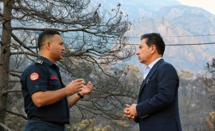 Muğla Büyükşehir Belediyesi araç ve personelleriyle yangın sahasında