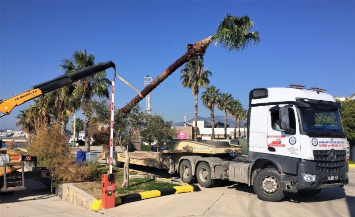 Muğla Büyükşehir Belediyesi’nden yapılan açıklamada; “Bodrum Yat Limanı düzenlemesi sırasında yapılan altyapı imalatları sırasında limanda bulunan ağaçların zarar görmemesi için büyük çaba harcandı. 8 adet palmiye ve bir kauçuk ağacı farklı alanlarda toprakla buluşturuldu. Özellikle 14 metre uzunluğundaki palmiye ağacının Bodrum-Datça feribotu ile taşınması ve yeni dikileceği alana götürülmesi çalışmayı izleyen vatandaşların da büyük ilgisini çekti. 14 metre uzunluğundaki palmiye ağacı Bodrum’da yapımı tamamlanan yeni otogara dikildi. Çevre hassasiyeti içerisinde çalışmalarımızı yürütüyoruz”
