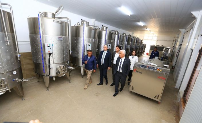 Muğla Büyükşehir Belediyesi’nin Fethiye ilçesinde hayata geçireceği Üzüm Suyu, Sirke, Pekmez ve Şarap Üretim tesisi kurulum çalışmaları devam ederken Muğla Büyükşehir Belediye Başkanı Dr. Osman Gürün ve Fethiye Belediye Başkanı Alim Karaca birlikte tesiste incelemelerde bulundu.