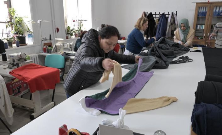 Muğla Olgunlaşma Enstitüsünde, 30 usta öğretici dikim atölyelerinde polar kumaştan battaniyeler, eşofman takımları, pançolar vb. giyim ürünleri dikiyor; depremzede çocuklar için moral kaynağı olması adına örgü ve pelüş oyuncaklar üretiyor.