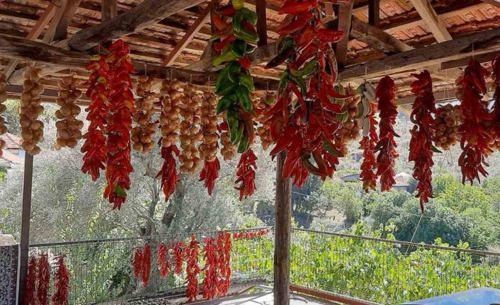 Muğla’da kış hazırlıkları başladı. Menteşe ilçesinde kadınlar, bahçelerinde yetiştirdikleri dolmalık biber ile patlıcanların içlerini tek tek temizleyerek iplere dizdikten sonra balkonlara sererek kurutuyor. Kadınlar kuruttukları biberleri kışın yemek için ayırırken, mahallelerde ise asılan biber ve patlıcanlar renkli görüntüler oluşturuyor.