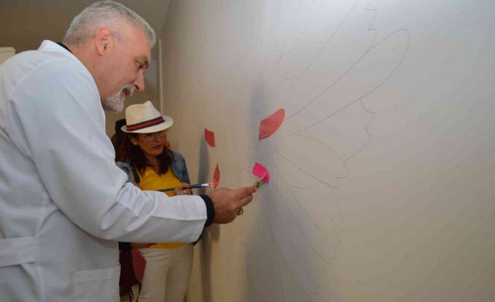 Muğla’da meme kanseri farkındalık ayında mamografi odasının duvarları boyandı