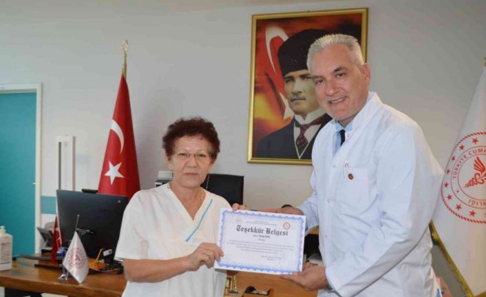 Muğla’da meslekte 40’ıncı yılını dolduran hemşireye teşekkür belgesi verildi