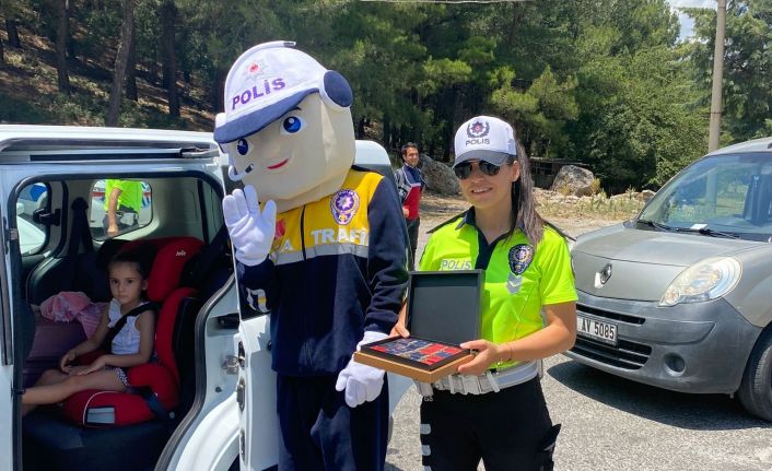 Muğla’da bayramın 1. gününde denetimlerine devam eden trafik ekipleri, sürücülere trafik kurallarına uyulması konusunda hatırlatmalarda bulunurken, minik yolculara da çeşitli hediyeler dağıtıldı.