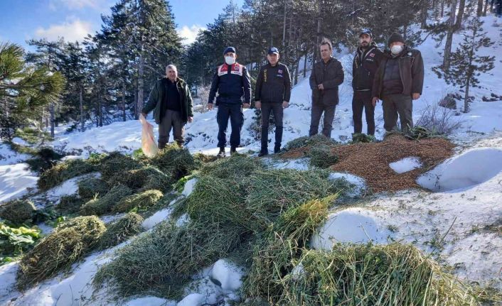 Muğla’da kar ve soğuk hava dolayısıyla yiyecek bulmakta zorluk çeken yaban hayvanları unutulmadı.