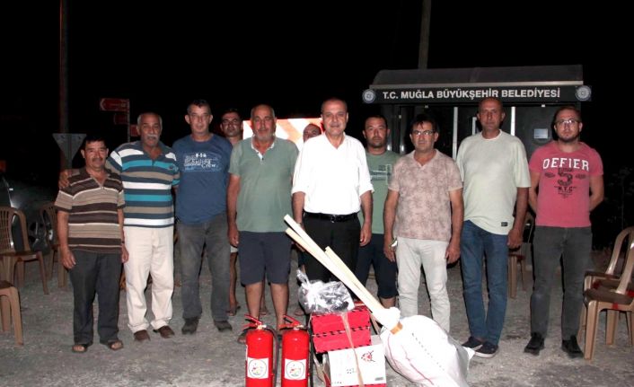 Muğla’nın Ortaca ilçesinde mahallelerde olası yangınlarda ilk müdahalelerde kullanılmak üzere yangın tüpü, iş ayakkabısı, yanmaz eldiven gibi çeşitli malzemeleri muhtarlıklara teslim etti.