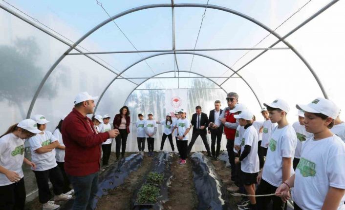 Muğla İl Tarım ve Orman Müdürlüğü’nün İl Milli Eğitim Müdürlüğü ile işbirliği içinde başlattığı ‘Okuldaki Çiftlik’ projesi kapsamında Mahinur Cemal Uslu Ortaokulu’ndaki öğrencilerle bir araya gelen Bodrum İlçe Tarım ve Orman Müdürü Durmuş Çakır, İl Müdürlüğü Koordinasyon ve Tarımsal Veriler Şube Müdürlüğü yetkilileri ile Bodrum İlçe Milli Eğitim Şube Müdürü Türker Yurtsever, okul bahçesinde kurulan seraya çilek ve çeşitli sebze fidanları dikerek ilk can suyunu verdi.