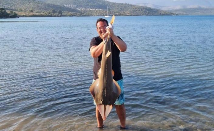Milas’a bağlı Kıyıkışlacık Mahallesi açıklarında eşiyle birlikte balık tutan bir vatandaşın oltasına, türü koruma altındaki kemane balığı takıldı. Balığı yakalayıp hatıra fotoğrafı çektiren çiftin, duyarlı davranarak balığı yeniden denize bıraktığı öğrenildi.