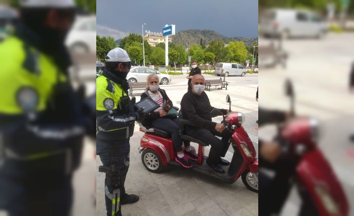 Ortaca İlçe Emniyet Müdürlüğü Trafik Denetleme Büro Amirliğine bağlı ekipler, Ortaca İlçe Emniyet Müdürlüğü Trafik Denetleme Büro Amirliğine bağlı trafik polisleri motosiklete 2 kişi binen sürücü ve yolculara sosyal mesafe kuralını ihlal etmekten 392 lira idari para cezası uygulamaya başladı.