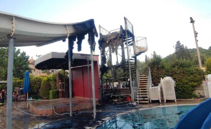 Muğla’nın Marmaris ilçesinde bir otelin havuz başındaki kaydırakta çıkan yangında kaydırak kullanılamaz hale geldi.
