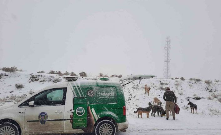 Muğla’nın Fethiye ilçesinde etkili olan soğuk hava nedeniyle hava sıcaklığının düşük seyretmesi nedeniyle yaşam şartları ağırlaşan sokak hayvanlarına polis ekiplerince mama bıraktı.