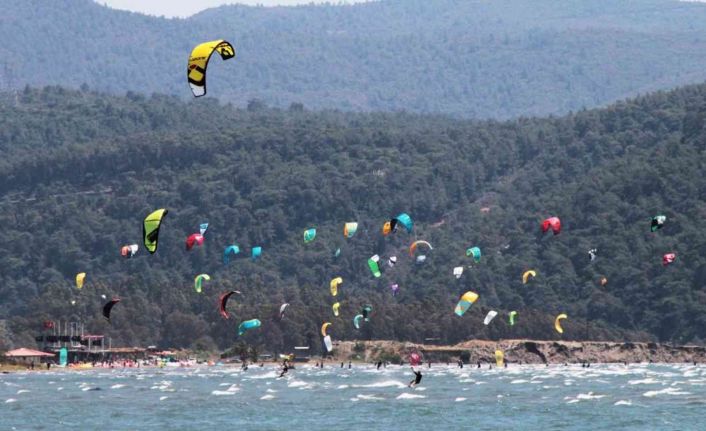 Muğla’nın Ula ilçesine bağlı Akyaka Mahallesi’nde rüzgarlı havayı fırsat bilen sörfçüler görsel şölen oluşturdu.