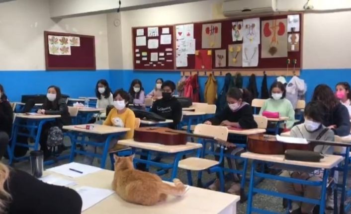 Muğla’nın Sakin Şehir ünvanlı Köyceğiz ilçesindeki Yunus Emre Ortaokulu’nda öğretmen ve öğrencilerin beslediği Limon isimli kedi müzik dersini hiç kaçırmazken, öğrencilerle birlikte derse giriyor.