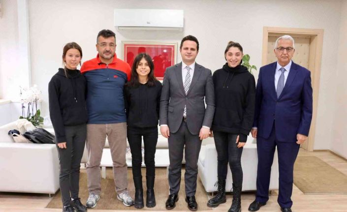 Türkiye Şampiyonu ve Gençler Avrupa Şampiyonu Milli okçular Hazal Burun, Minikler Türkiye Şampiyonu Meltem Yaka ve Ceyda Kömür, Yatağan İlçe Milli Eğitim Müdürü Osman Alemdar ve antrenörleri Dr. Ejder Sözen eşliğinde İl Milli Eğitim Müdürü Emre Çay’ı ziyaret etti.