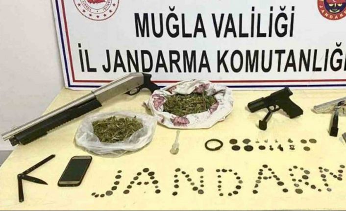 Muğla İl Jandarma Komutanlığınca yapılan istihbari çalışmalar sonucu, Seydikemer İlçesi Eşen Mahallesinde ikamet eden K.Y. isimli şahsın ikametinde uyuşturucu madde, ruhsatsız silah ve tarihi eser bulundurduğu bilgisinin alınması üzerine Seydikemer İlçe Jandarma Komutanlığı ekiplerince şüphelinin ikametinde Narkotik Madde Arama Köpeği ‘CAKA’ ile birlikte arama yapıldı.