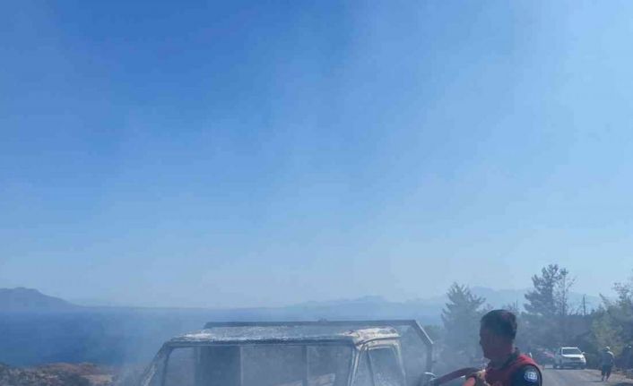 Muğla’nın Bodrum ilçesinde seyir halindeki bir kamyonette çıkan yangında araç kullanılamaz hale geldi.