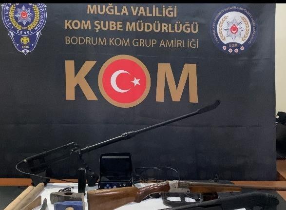 Edinilen bilgiye göre, İl Emniyet Müdürlüğü Kaçakçılık ve Organize Suçlarla Mücadele Bodrum Grup Amirliği ekipleri, Bodrum Antik Tiyatro’nun üst kısımlarındaki arazide kaçak kazı yapıldığı ihbarı üzerine Bodrum Cumhuriyet Başsavcılığı koordinasyonunda harekete geçti. Kazı bölgesine ve 5 ayrı adrese eş zamanlı operasyon düzenlendi. Adreslerdeki aramalarda, define arama dedektörü, 15 tarihi sikke, 4 parça halinde tarihi obje, 2 ruhsatsız tüfek ve kazıda kullanılan birçok araç gereç ele geçirildi. 5 şüpheli gözaltına alındı.