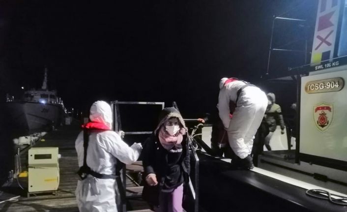 Lastik bot ile yasa dışı yollardan Yunanistan adalarına gitmeye çalışan ve içinde 13 düzensiz göçmenin bulunduğu botun motoru açık denizde arıza yaptı. Sürüklenen teknedekilerin yardım çağrısı üzerine bölgeye Sahil Güvenlik botu yönlendirildi.