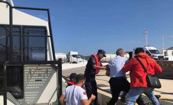 Ticari gemide rahatsızlanan vatandaş, Sahil Güvenlik kipleri tarafından Bodrum’da kıyıda bekleyen 112 ambulans ekiplerine teslim edildi.