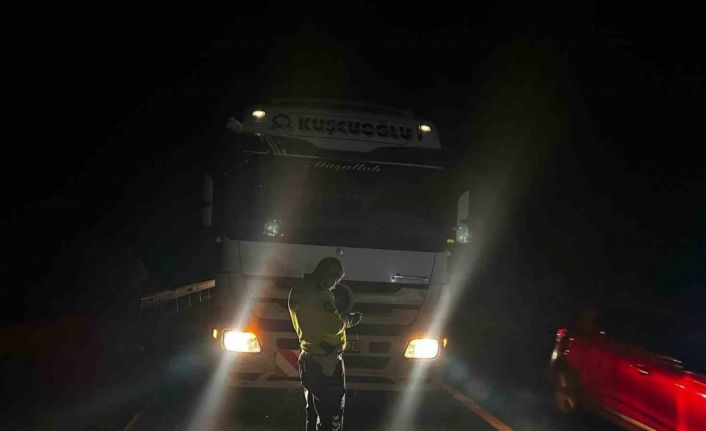 Kazanın ardından yol güvenliği sağlanırken, tır şoförünün dikkati takdir topladı.