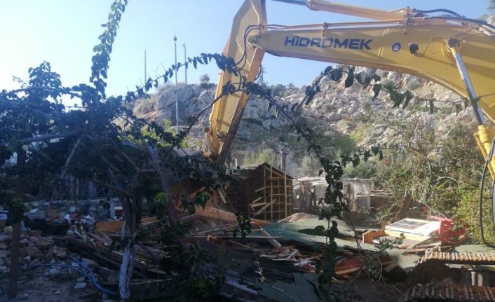 Marmaris’e 45 kilometre uzaklıktaki turistik Taşlıca mahallesinde Çevre ve Şehircilik İl Müdürlüğü ve Marmaris Belediyesi Fen İşleri ekiplerince sahilde bulunan bir işletme yıkıldı. İşletmenin içindeki malzemeler belediye ekiplerince toplanarak dışarı çıkarıldı.