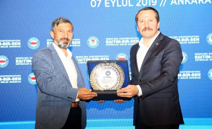 46. Başkanlar Kurulu toplantısında Sendikanın 27’inci yılında Türkiye geneli 433 bin 787 üyeye ulaşmasında Muğla Şubesinin göstermiş olduğu başarıdan dolayı Genel Başkan Ali Yalçın tarafından Şube adına Başkan Önder Uçak’a başarı plaketi verildi. Eğitim-Bir-Sen Muğla Şube Başkanı Önder Uçak ve hazır da bulunan heyet Muğla’nın Kavaklıdere İlçesinin kadim bakırcılık sanatı ile nakış nakış işlenen Memur-Sen ve Eğitim-Bir-Sen logolarını Genel Başkan Ali Yalçın’a makamında verdi.