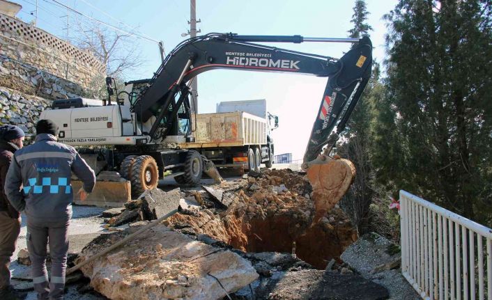 Muğla’da üç gündür devam eden sağanak yağış sonrası Karşıyaka Mahallesi Yağmur Sokak üzerinde çatlamalar sonrası yolun bir bölümü zarar gördü.