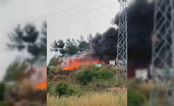 Hurda araç lastiklerinin yanması ile gökyüzünü siyah duman kaplarken, bölgeye itfaiye ekipleri sevk edildi. Muğla Büyükşehir Belediyesi Yatağan İtfaiye Grup Amirliği ekipleri yanan hurda araç lastiği yangınını müdahale ediyor.