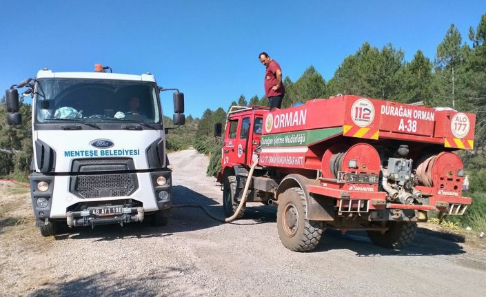 Menteşe Belediyesi, Menteşe sınırları içinde 10 bin hektarın üzerinde alanın yandığı orman yangınlara karşı bazı bölgelerde su tankerleriyle direk, bazı bölgelerde ise orman ve itfaiye arazözlerine su takviyesinde bulunarak müdahalelerde bulunuyor.