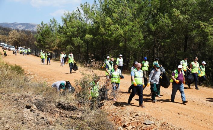 Yüzde 80’i ormanlık alandan oluşan ve yangınlarda 10 bin hektara yakın alanın yandığı Menteşe ilçesinde yanan sahalarda yeni kıvılcımların önlenmesi amacıyla Menteşe Belediye Başkanı Bahattin Gümüş’ün de katılımı ile başta cam ve benzeri çöpler toplandı.