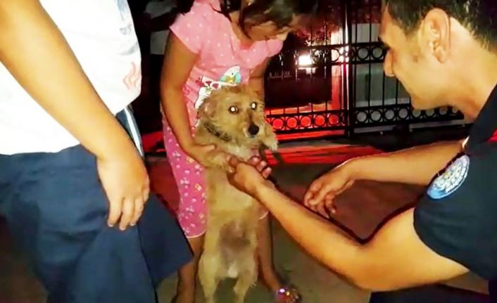 Gece saatlerinde yaşanan olayda başkasına ait olduğu öğrenilen küçük bir yavru köpeğin kurtarılması için ekipler önce daire şeklindeki demiri kesti. Kapıdan kurtulan yavru köpeğin başında kalan yuvarlak demir metali ekipler köpeğe zarar gelmeden başından çıkardı.