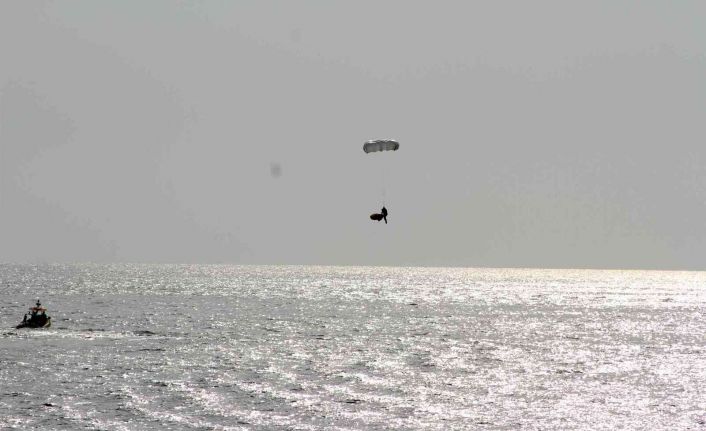 Muğla’nın Fethiye ilçesinde yamaç paraşütüyle atlayan pilot, yedek paraşütünü açarak denize indi.