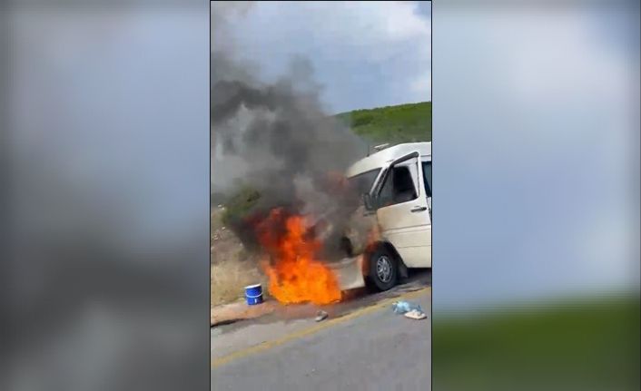 Muğla’nın Menteşe ilçesi Yerkesik yolu üzerinde seyir halindeki bir minibüste çıkan yangın paniğe neden oldu.