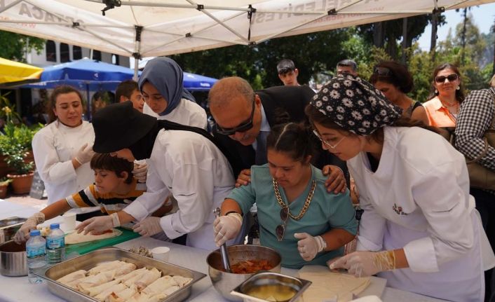 Stantların arasında özellikle dikkat çeken “Engelsiz ve İsrafsız Türk Mutfağı” adı altında özel öğrencilerin paçanga böreği ve ayran yaparak dağıtım yapması oldu.