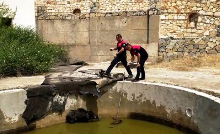 Türkkuyusu mahallesi Tepe sokak da bulunan bir inşaatın havuzuna 5 adet yavru domuz ve anneleri düştü. İçi su dolu havuzda mahsur kalan domuzları gören vatandaşlar durumu itfaiye ekiplerine bildirdi. Olay yerine gelen Bodrum İtfaiye Grup Amirliği ekipleri anne domuz ve yavrularını kuyudan çıkardı. Bitkin halde olan domuzlar havuzdan çıkar çıkmaz koşarak gözden kayboldu.