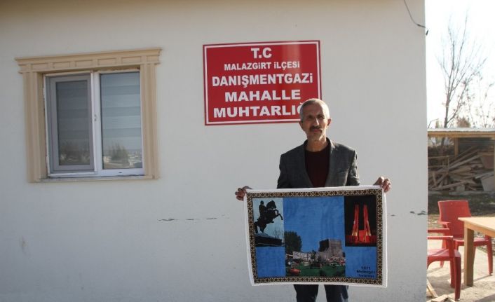 Malazgirt ilçesinin en büyük mahallelerinden biri olan Danışmendgazi Mahallesi’nde hayırseverlerin desteği ile yaptırılan muhtarlık binası ve caminin yapımı devam ediyor. Muhtar Hasan Başaran, caminin inşaatını bitirmek için tarihi Malazgirt halıları bastırtarak satışa çıkardı. Süs halıları bastırıp satışa çıkaran ve gelirlerinin tümünü cami inşaatında kullanacağı belirten Muhtar Başaran, “Mahalle sakinlerine söz verdik, bir an önce cami inşaatımızı bitirmek için canla başla çabalıyoruz. Tarihi Malazgirt ilçemizin simge resimlerini süs halılarına bastırdık. Bu halılarımızı ilçe halkımıza ve batıda yaşayan değerli iş adamlarımıza satmayı düşünüyoruz. Buradan gelecek gelirleri cami inşaatımızda kullanacağız. Cami inşaatımızın taziye evi kısmı ve minaresinin kaba inşaatı bitti. Şimdi ibadethane bölümü dediğimiz ikinci kat çalışmalarına başladık. Bu camimizin inşaatına bir nebzede olsa katkı sağlamak için elimizden gelen tüm gayreti sağlıyoruz. Allah yardımcı olan herkesten razı olsun” dedi.Cami inşaatının bitirilmesi için süs halılarını satılığa çıkardı