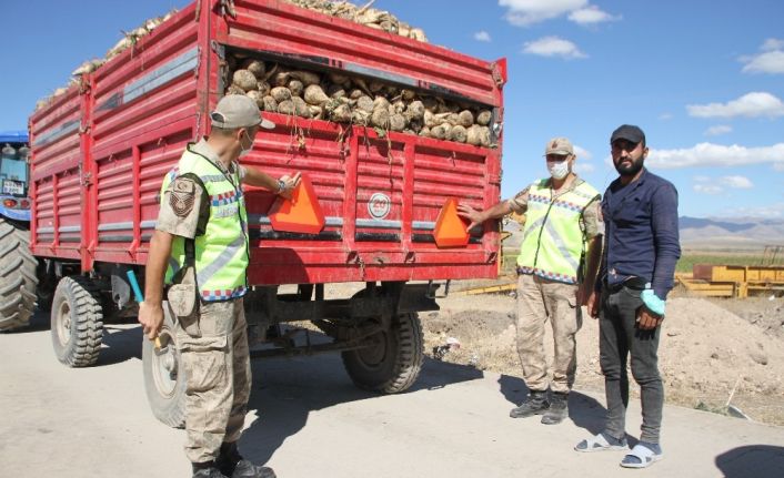 Malazgirt İlçe Jandarma Komutanlığı’na bağlı trafik ekipleri, ilçe dışındaki şeker pancarı kantarına şeker pancarı boşaltmak için gelen şeker pancarı üreticilerin traktörleri ile römorklarını denetledi. Şeker pancarında hasat zamanı olduğunu için büyük bir traktör yoğunluk yaşanan şeker pancarı kantarında, traktör römorklarında reflektör ve tepe lambası olmayan sürücüleri uyaran jandarma ekipleri, Malazgirt Ziraat Odası katkılarıyla alınan reflektörleri sürücülere dağıtıldı. İlçe Jandarma ekipleri ayrıca şeker pancarında oluşan traktör yoğunluğu sevk ve idare ederek olası bir yoğunluğun önüne geçiyor. Şeker pancarı kantarında traktör sahiplerini ziyaret eden Malazgirt Ziraat Odası Başkanı Tahsin Kılıç, "Odamızın katkılarıyla alınan reflektör dağıtımını organize bir şekilde dağıtan Malazgirt İlçe Jandarma Komutanlığı’na bağlı trafik ekiplerine çok teşekkür ediyorum. Traktörlerinde reflektör olamayan sürücülerimiz için odamız tarafından reflektör finans etildi. Bugün İlçe Jandarma Komutanlığımıza teslim ettik. Jandarma trafik ekipleri tek tek kontrol ederek, bütün römorklara reflektör takıyor. Bu reflektörler bittikçe yine temin edeceğiz. Amacımız burada kimse olası bir kaza ve can kaybı yaşamasın. Şuan ilçe genelinde jandarmamız tarafından çok yoğun bir trafik kontrol çalışması var. Bizlere her konuda yardımcı olan ilçe kaymakamız Sayın Emre Yalçın’a çok teşekkür ediyorum. Genel Başkanımız Sayın Şemsi Bayraktar’ın talimatları doğrultusunda çalışmalarımız yoğun şekilde sürdürmeye devam edeceğiz” dedi.