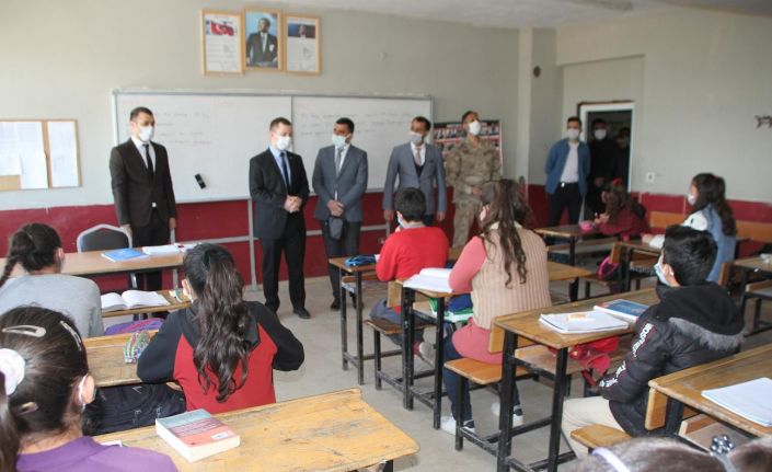 Beraberindeki İlçe Jandarma Komutanı Yüzbaşı Ahmet Uysal ve İlçe Milli Eğitim Şube Müdürü Şahin Kılıç ile 8 sınıflarda yüz yüze eğitime devam eden Hasretpınar Köyü İmam Hatip Ortaokulunu ziyaret eden Kaymakam Demirer, korona virüs tedbirleri kapsamında eğitim gören öğrencilerle sohbet etti. Kaymakam Demirer, “Sevgili öğrencilerimiz, bildiğiniz üzere ülkemiz genelinde korona virüs tedbirleri kapsamında sadece sınavlara hazırlan 8. ve 12. sınıflar var. Sizler maske ve mesafe kurallarına uyarak derslerinize çalışın. Derslerinize çok çalışın. Sizleri devletimizin en yüksek mevkilerde görmek istiyoruz. Bu yüzden çok çalışıp çok okuyun" dedi.