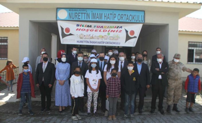 Malazgirt’te bağlı Nurettin Köyü Ortaokulu’nda TÜBİTAK Bilim Fuarı sergisi açıldı.